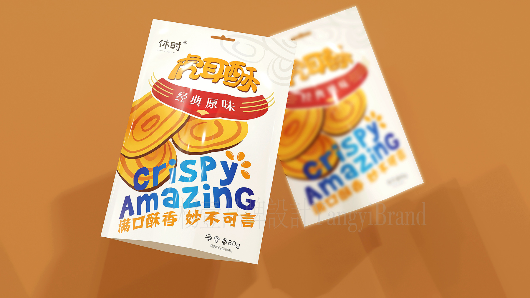 休时Create a Happy Moment: 满口酥香 妙不可言。食品袋包装设计,年轻化,时尚感,轻量化设计